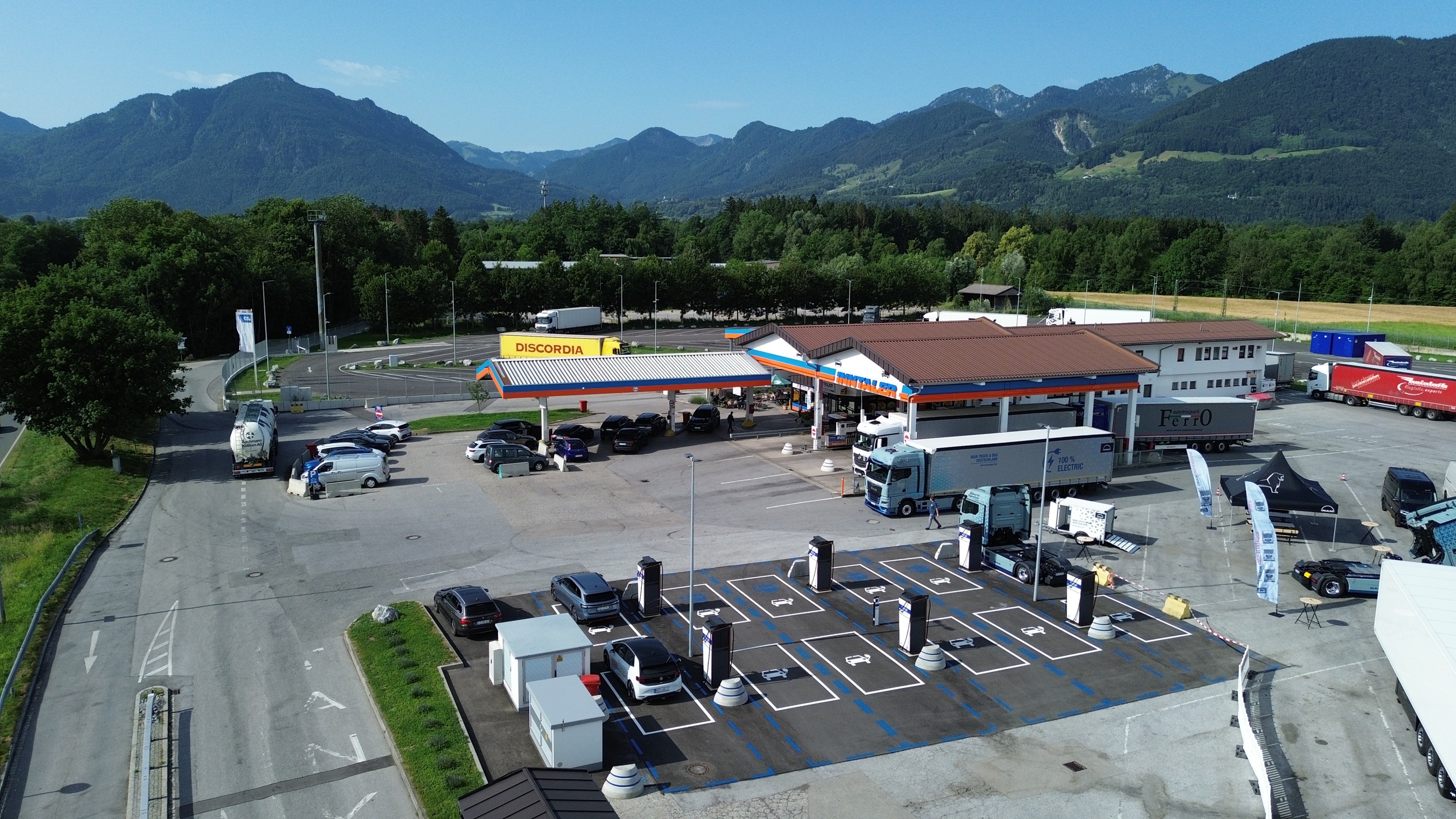 Am Inntaler Autohof in Raubling ist ein Schnell-Ladepark für Elektrofahrzeuge entstanden. Insgesamt befinden sich dort zwei 400kW- und vier 300kW-Ladestationen, an denen jeweils zwei Fahrzeuge gleichzeitig laden können. Alle Ladepunkte sind sowohl für E-Autos als auch eLKW nutzbar. Der Standort eignet sich perfekt: Der Inntaler Autohof ist nicht nur optimal an die vielbefahrenen Autobahnen A93 und A8 sowie die Bundesstraße B15 angebunden, sondern bietet allen Fahrern eine komfortable Rastmöglichkeit während des Ladevorgangs.